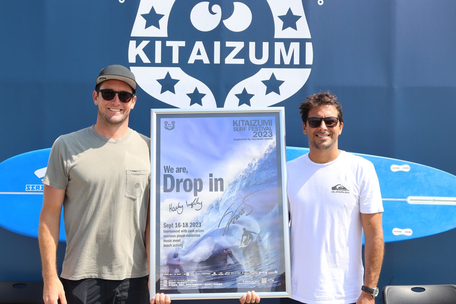 ハーレー・イングレビー:今回はじめて福島に招待されて来ましたが、とてもキレイなビーチで、サーフィンも非常に楽しかったです。私の地元のビーチに岩場の形が似ていたので、思わず地元を思い出しました。福島はのどかで素敵な地ですね。また、今回の招待をきっかけに震災当時の写真や映像を見ましたが、ここまで復興しているとは思っていなかったです。私たちが来日したことによって、これからの近い将来、少しでも皆さまに多くのパワーを与え、多くのサーファーがこの北泉海岸に戻ってきてくださることを願っています。
