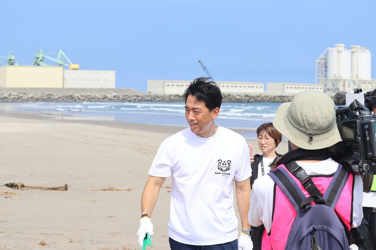 同日には、イベントアンバサダーである小泉進次郎氏も北泉海岸に訪れ、ライブ配信出演や、一般参加者とともにビーチのクリーンアップ活動を実施。小泉氏の参加は、サーフィンへの熱い想いを示すものでした。今回のマガジンでは、小泉氏へのインタビュー内容をご紹介いたします!