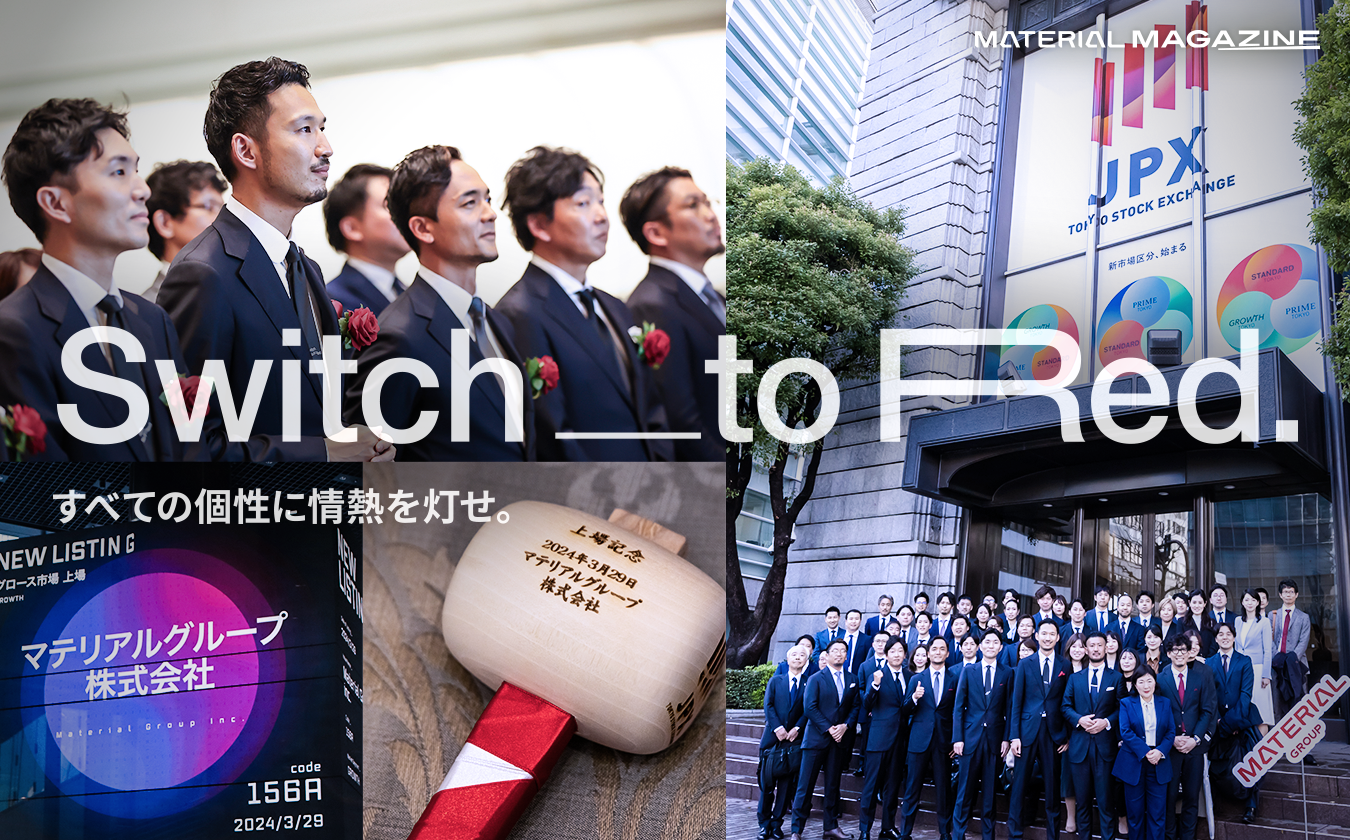 マテリアルグループは、これまで支えてくださった多くのステークホルダーの皆さまのおかげで、新規上場という節目を迎えることができました。マテリアルグループはこれからも、「Switch to Red.」の実現に向けて、さらなる成長を続けてまいります。
