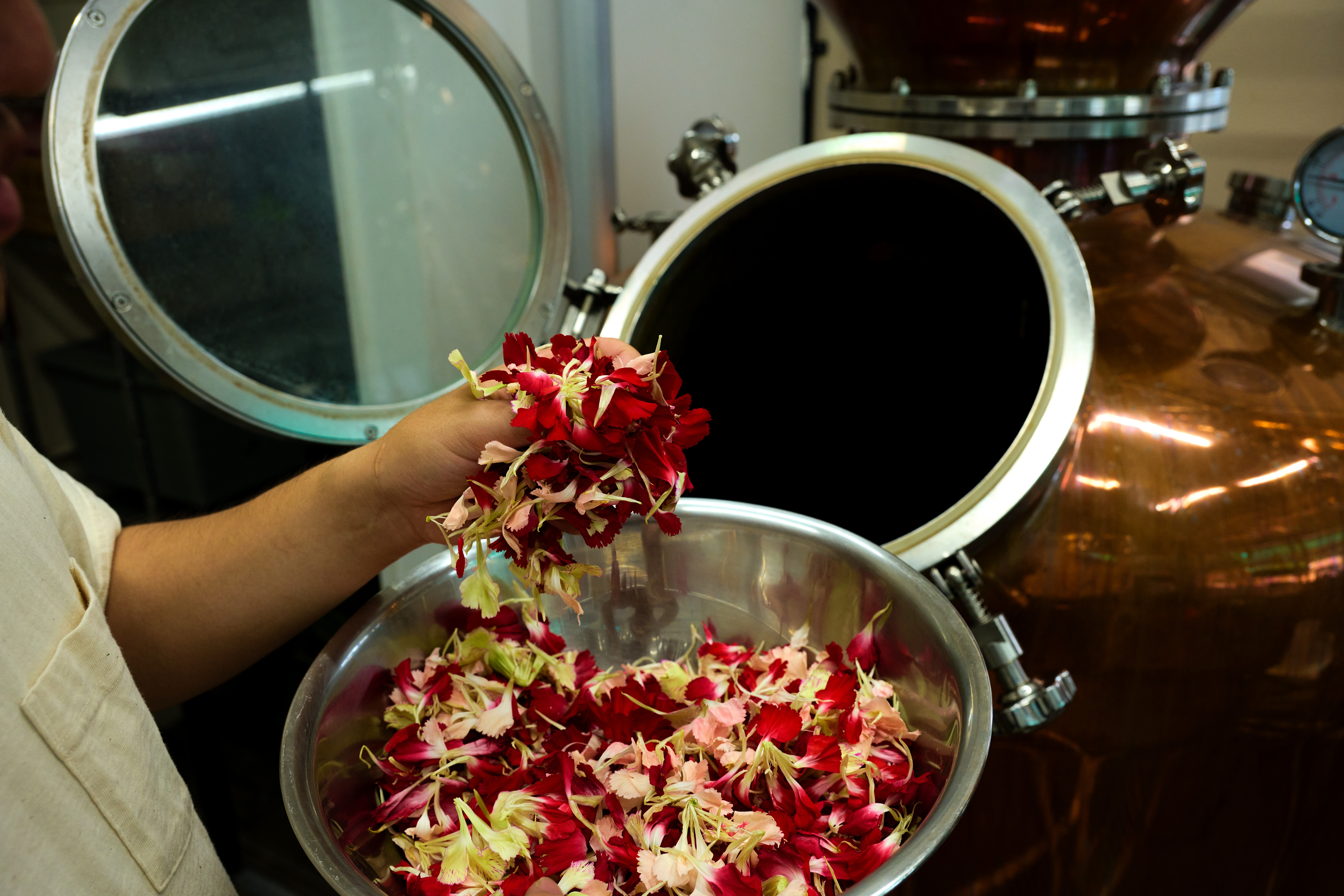 右写真:「蒸留前のロスフラワー」