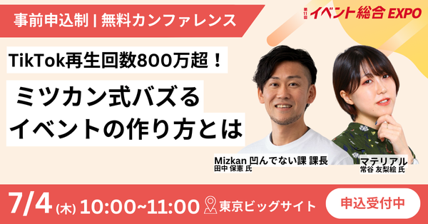 このたび、マテリアルのPRプランナー(Chief Storyteller)である常谷が「イベント総合EXPO」特別講演「SNSで話題を呼ぶイベント作り」に登壇いたします。