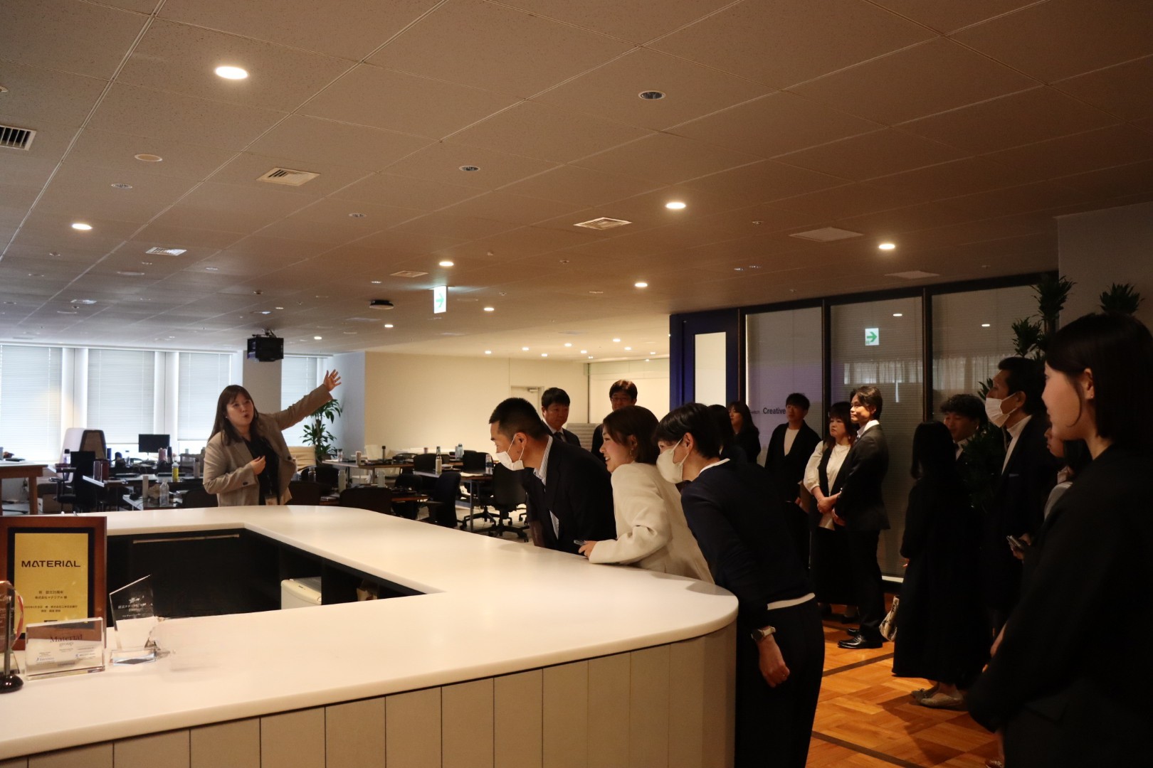 さらに、マテリアル本社オフィスを巡るツアーを実施。ご家族にお子様の職場環境や一緒に働く社員の様子をご覧いただくとともに、マテリアルグループの事業内容や会社の取り組みについてもご紹介しました。