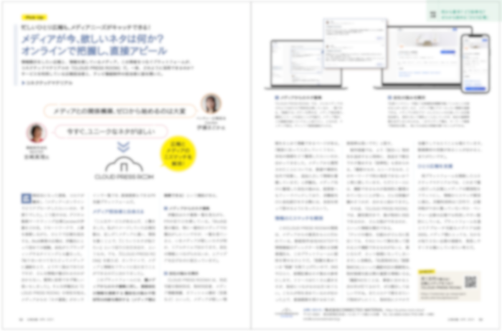 この度、2021年3月1日(月)発売の『広報会議4月号』特別企画「ゼロから始めるひとり広報」コーナーにて、『CLOUD PRESS ROOM』が紹介されております。