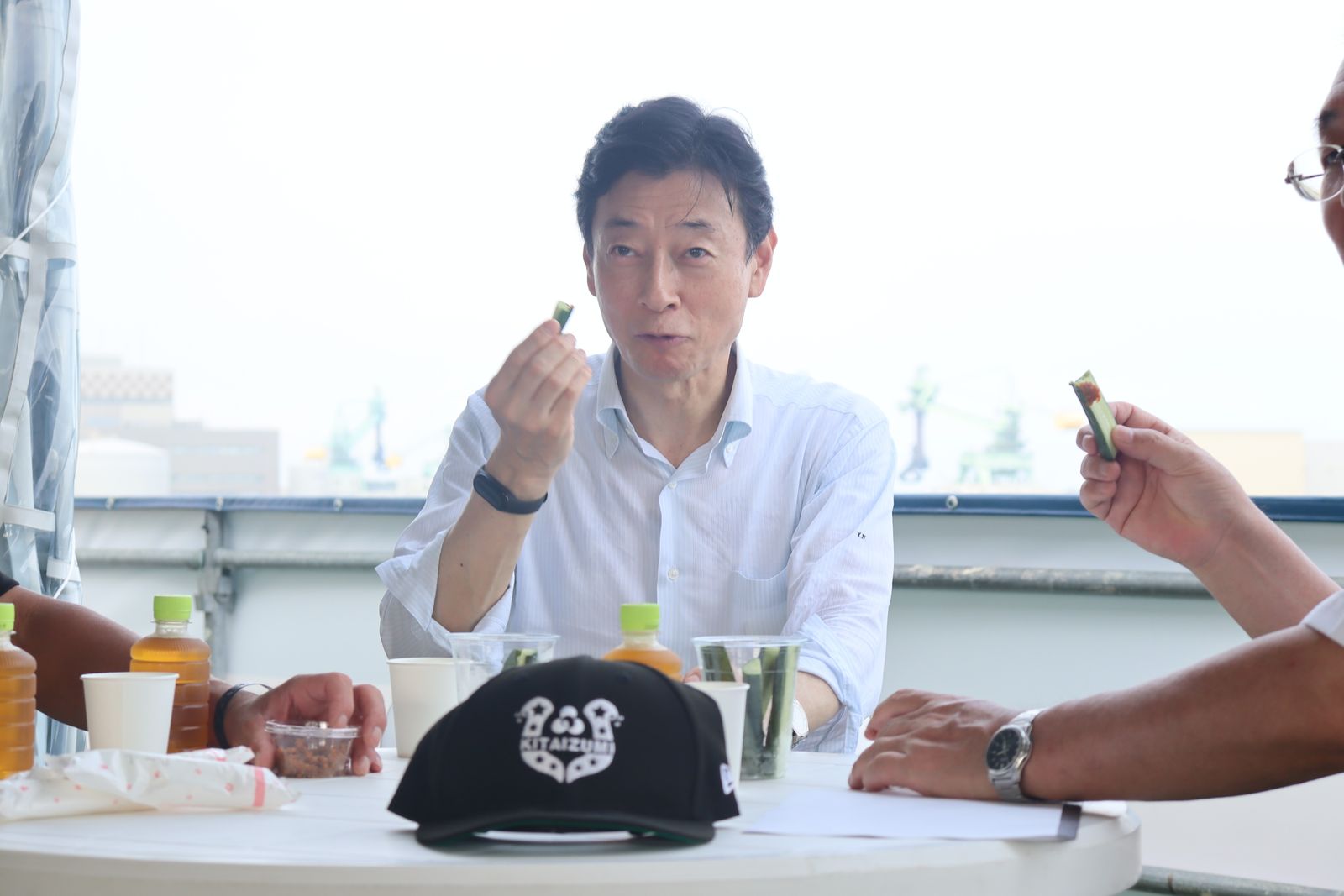 南相馬市では、震災以前より気候的にもきゅうりの収穫量が多く、この機会にぜひ召し上がってほしいと市長自らが持参されました。