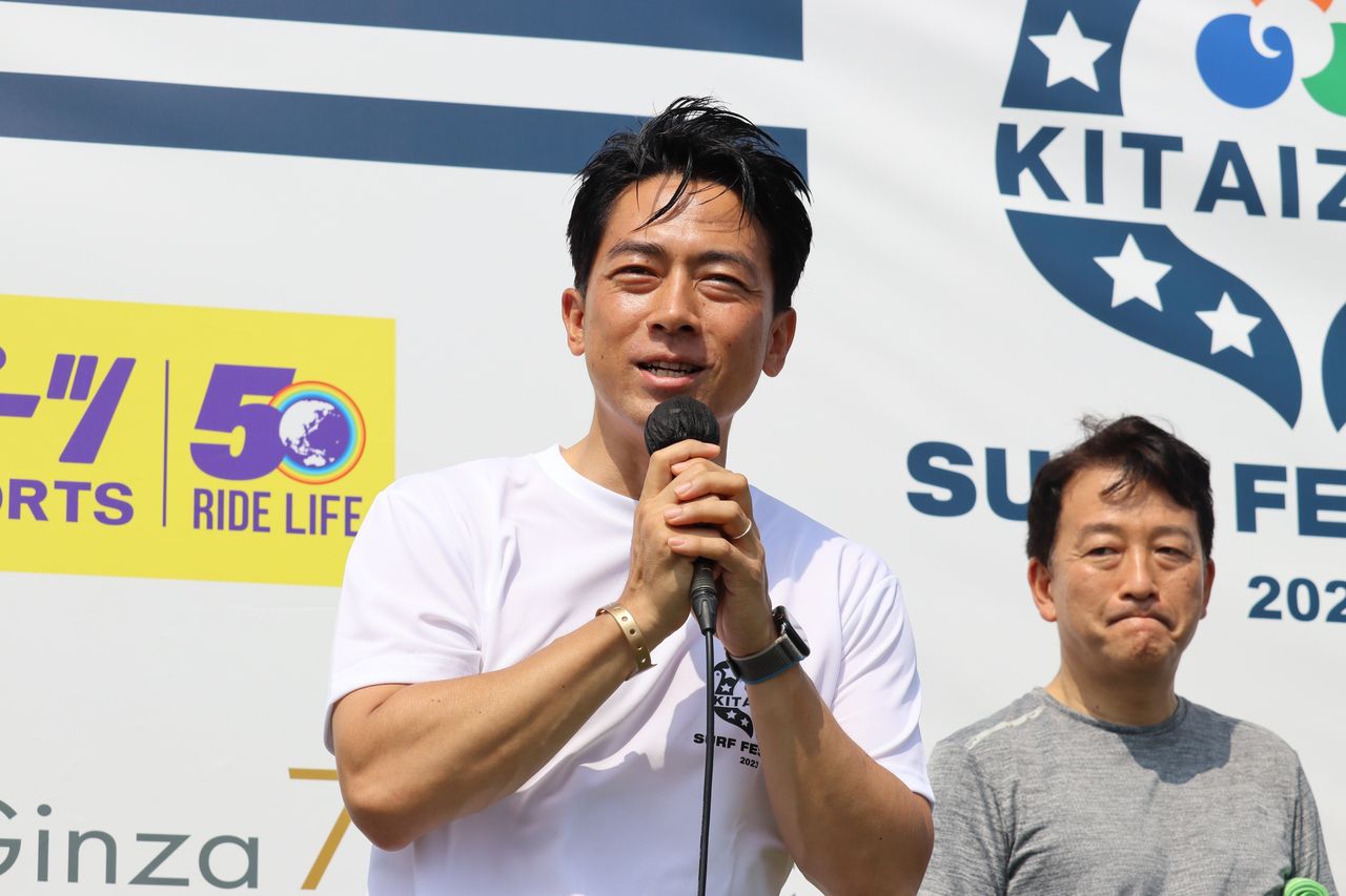 同日には、イベントアンバサダーである小泉進次郎氏も北泉海岸に訪れ、ライブ配信出演や、一般参加者とともにビーチのクリーンアップ活動を実施。小泉氏の参加は、サーフィンへの熱い想いを示すものでした。今回のマガジンでは、小泉氏へのインタビュー内容をご紹介いたします!