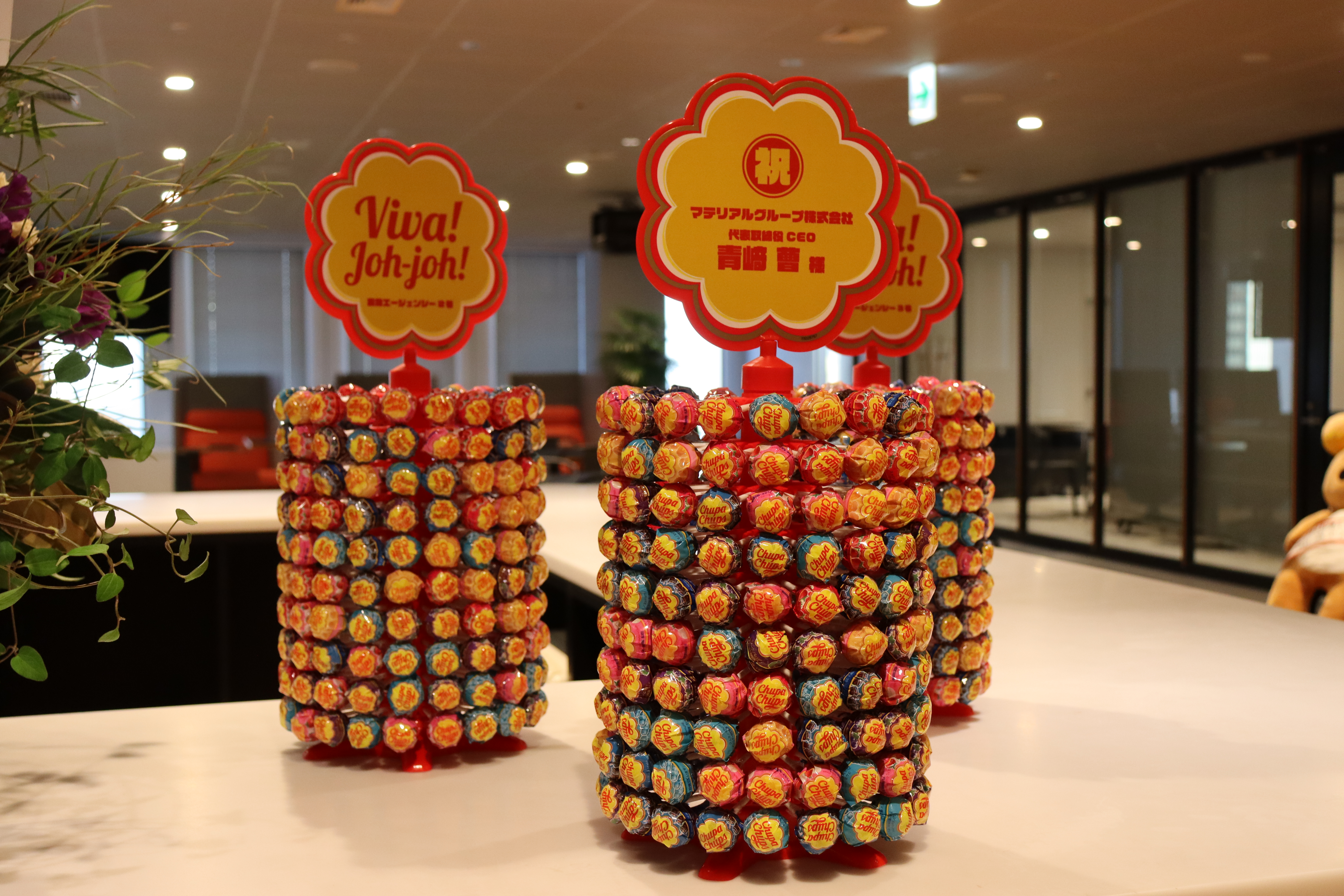 東証でのセレモニーは人数制限があるため、ここでは日頃お世話になっている方々をお招きし、これまでの感謝を込めて、グループ社員に楽しんでもらえるコンテンツを用意いたしました。