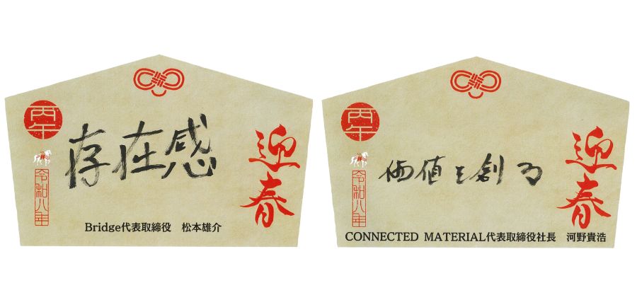 ご祈祷を終えると、自然と話題にあがったのは「今年のテーマ」や「目標」について。そこで今回は、経営陣および広報チームより、午年にちなんだ「2026年、跳躍させたいこと」を、それぞれの想いを込めた「書き初め」としてお届けします。