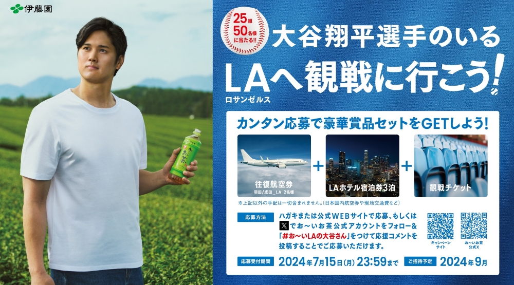伊藤園「お~いお茶」がロサンゼルス・ドジャースの大谷翔平選手とグローバル契約を締結。その活動の一環として、「お~いお茶グローバルアンバサダー」への就任の発表と、新キービジュアルを公開した。同時に、キャンペーンや新聞広告、世界85か所以上へ展開するOOH広告の発表もおこなった。