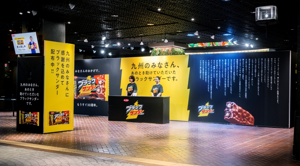 有楽製菓が展開する『ブラックサンダー』が、2024年9月に発売30周年を迎えるにあたり、過去に、販売不振によるブランド存続の危機を救ってくれた九州の人々に感謝を伝えたいという想いから、『ブラックサンダー』の恩返し企画を実施。九州7県の新聞での広告掲出をはじめ、天神地下街での限定パッケージ「アリガトサンダー」のサンプリングイベントや、販売不振による一時生産終了時に、復活を熱望し声をあげてくれたブランドの「恩人」を探す企画などを展開した。
