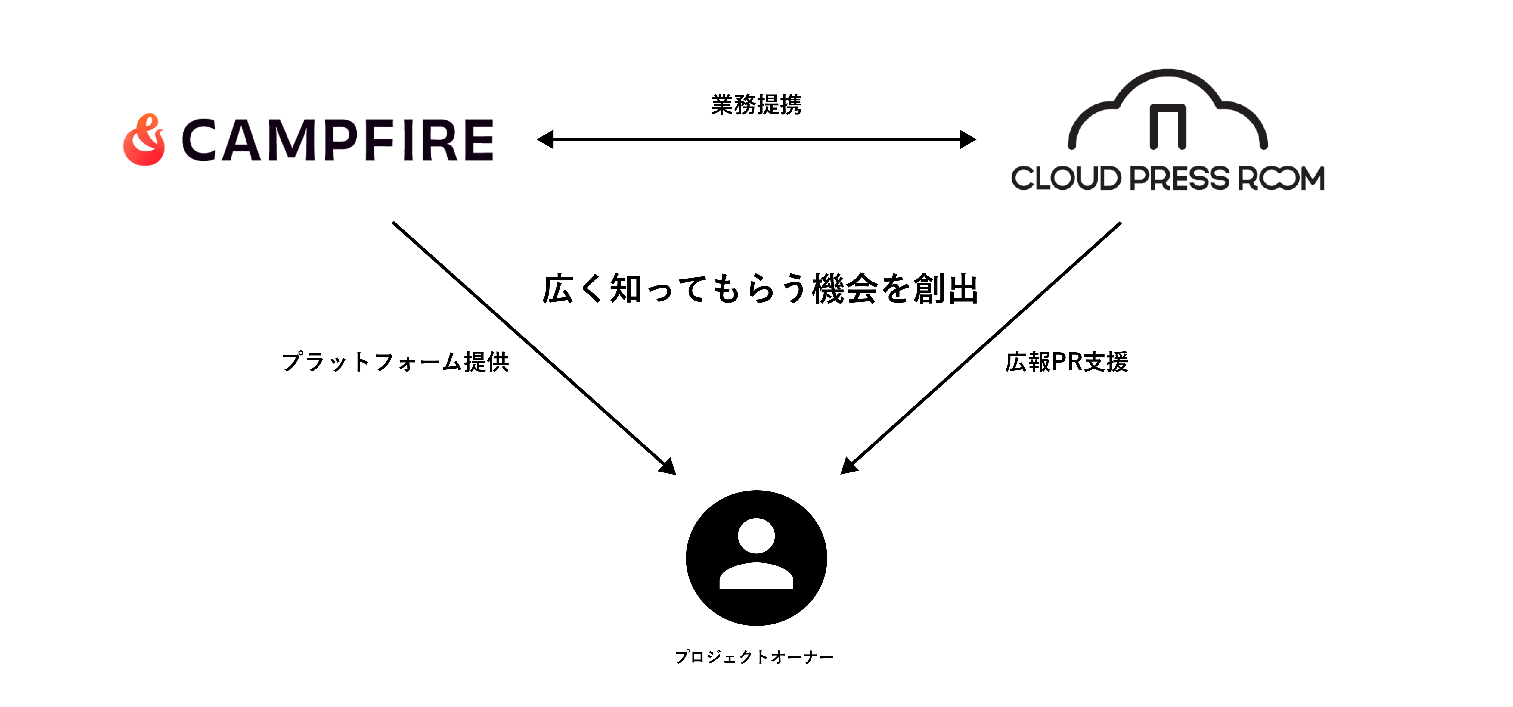 この度、CAMPFIRE社と「CAMPFIRE」で展開されるプロジェクトをPR支援で連携できる事を大変嬉しく思っております。弊社は「CLOUD PRESS ROOM」という、広報・PRにおけるメディアとのマッチングを実現するサービスを展開していますが、「CAMPFIRE」を利用される企業・個人・団体のサービスや商品を、PR会社ならではの視点でサポートさせて頂き、メディアリレーションの強化とPR戦略のサポートを行い、世の中にまだ知られていない価値あるプロジェクトを広めるべく、チーム一丸となって取り組んでまいります。