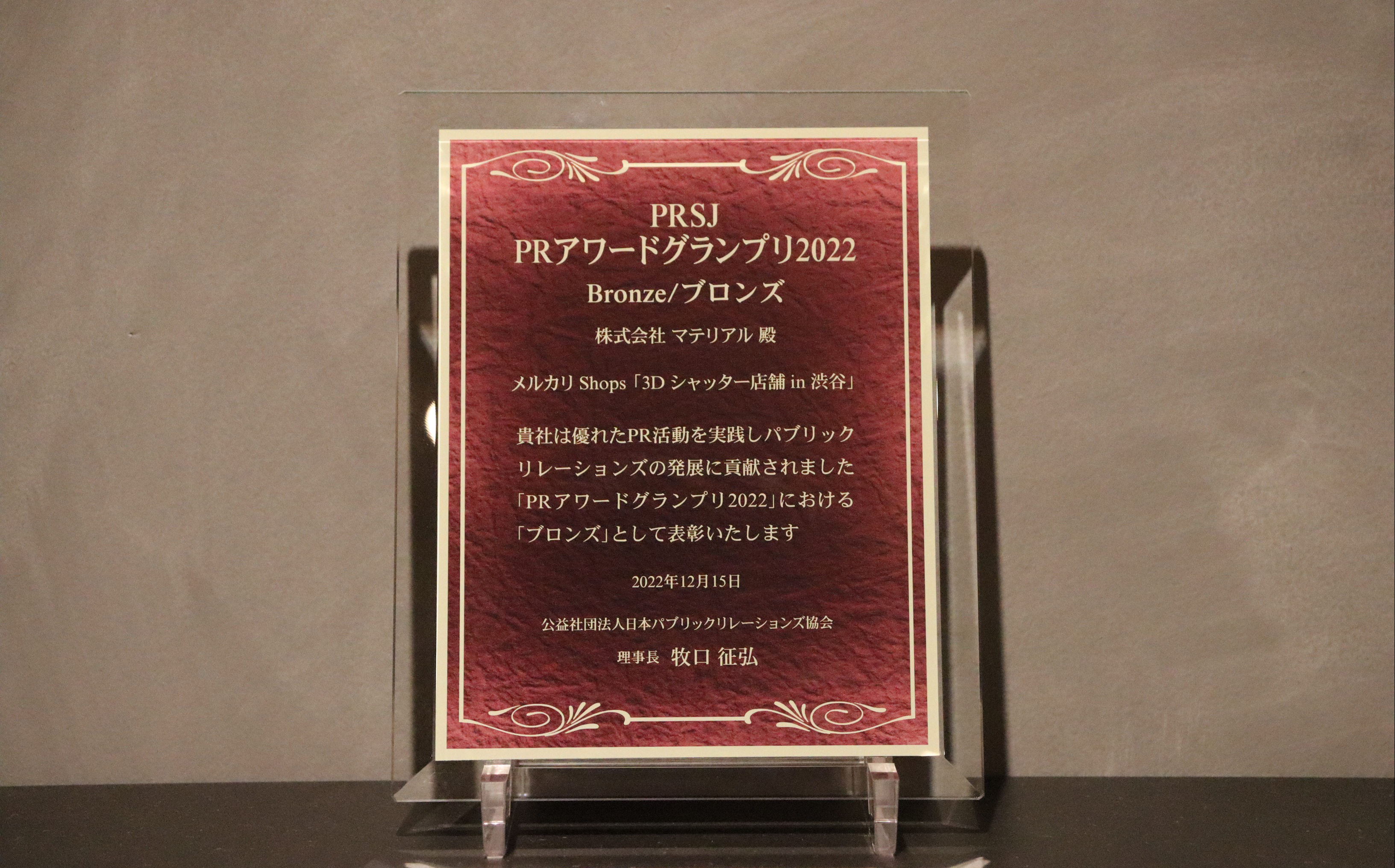 この度マテリアルは、公益社団法人日本パブリックリレーションズ協会が主催する「PRアワードグランプリ2022」において、PRを担当した『飲めない人が主役のバー「SUMADORI-BAR-SHIBUYA」』および『メルカリShops「3Dシャッター店舗in渋谷」』がそれぞれシルバー・ブロンズを受賞いたしました。