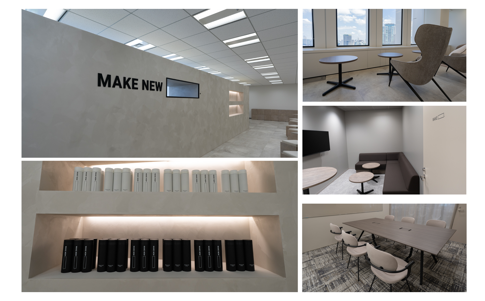 マテリアルグループは引き続きリモートワークを基軸とした働き方を推奨しておりますが、新たなオフィスに出社した際には、リモートワークでは得ることのできない体験を提供するのが、このオフィスの役割であると考えております。新たな環境を手にし、これまで以上に自由な発想を持って、『MAKE NEW . 』という価値を提供してまいります。