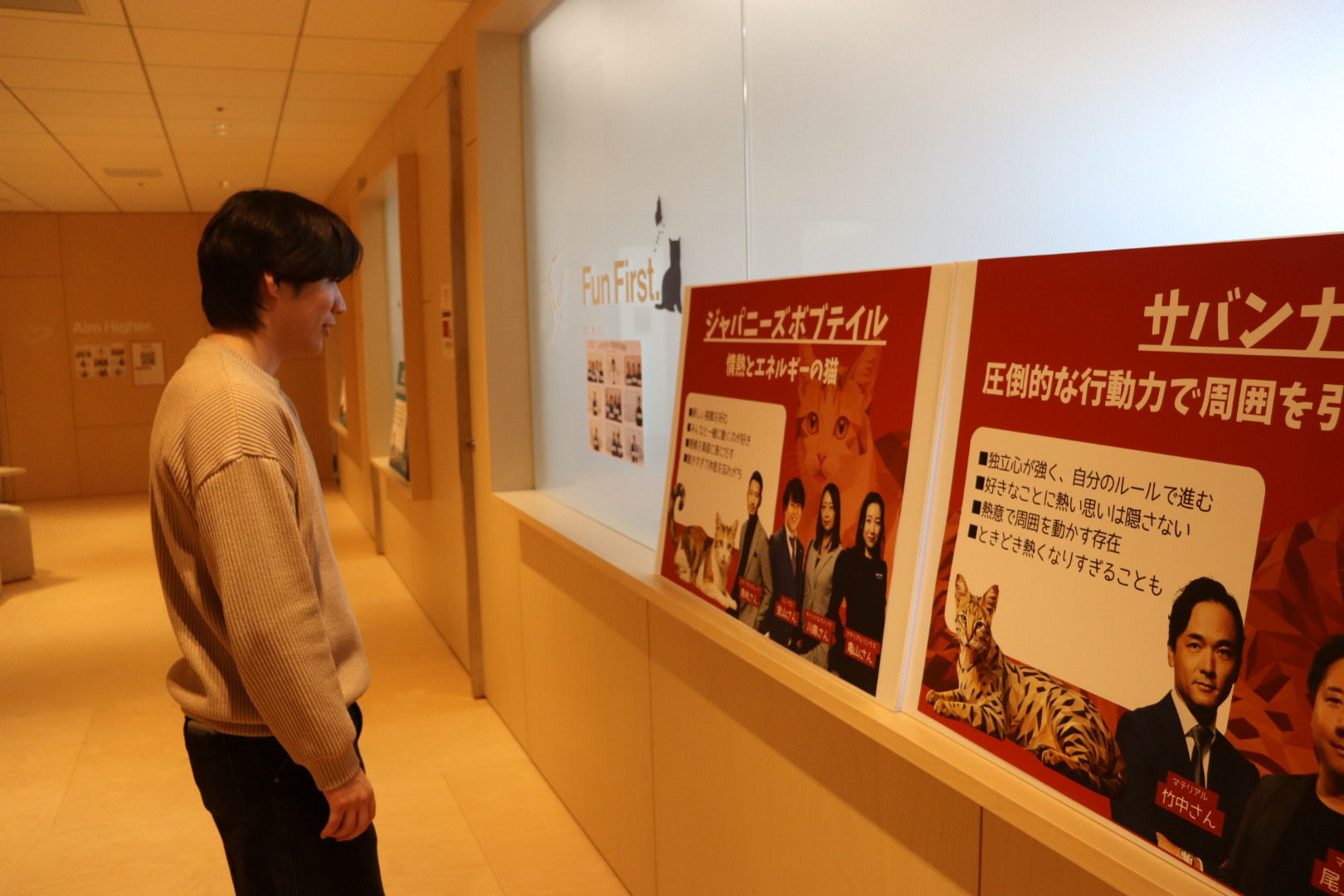 猫の写真に気づいたメンバーからは「朝からのミーティングだったけど、会議室に猫の写真があって癒された!」という声も。緊張感のある空気が流れがちな会議中も、ふと壁を見ればかわいい猫(と犬)と目が合う……そんな温かい空間が広がっていました。