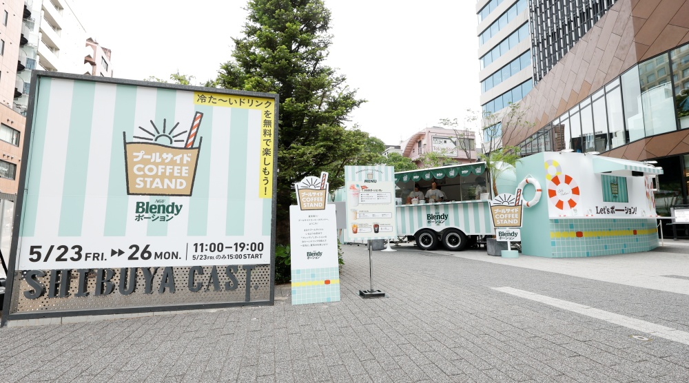 味の素AGFが、『Blendyポーション』シリーズの新CM放映と、体験型ポップアップイベント『Blendyポーションpresents 夏先取り!プールサイドコーヒースタンド』を開催。