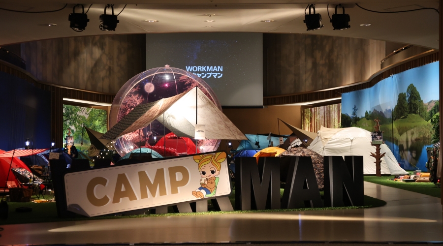 - ワークマン初のキャンプギア本格展開にあたり、販売戦略を軸とした今後のビジョン発表を行う、特に経済メディアに向けた記者発表会を企画。展示ホール内は商品の展示を優先したいとの要望を受け、施設のホワイエ内で実施した。