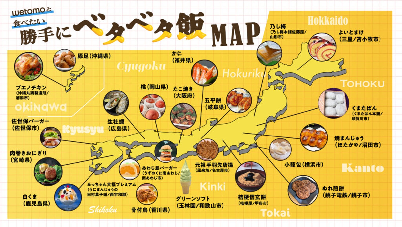 - 全国の「ベタベタ飯」を集めた「wetomoと食べたい 勝手にベタベタ飯MAP」を作成した